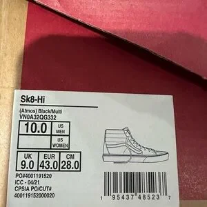 Vans x Atmos Sk8 Hi Men’s Size 10. New in box.