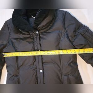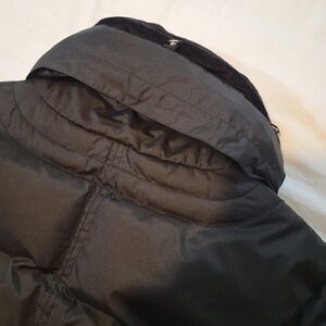 thick warm and light weight material waterproof and durable. perfect condition and length very stylish with retractable hood