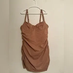 Elegant tan swim by SKIMS. Perfect for beach or poolside.
