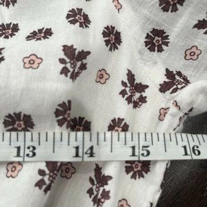 Elegant white midi dress with brown patterns. Features long sleeves and a tie waist. Perfect for casual outings.