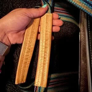 Trimmed in natural untreated leather