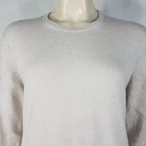 Isle of Skye beige 100% Cashmere crew neck pullover tunic sweater women Large 42
