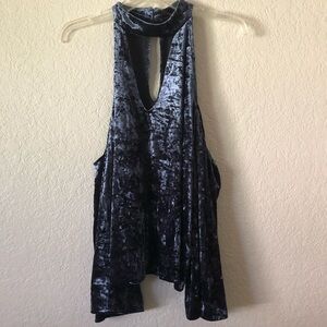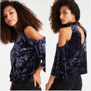 So trendy with cold shoulders and a high neck choker! Blue velvet material. Brand is American Eagle. Size large.