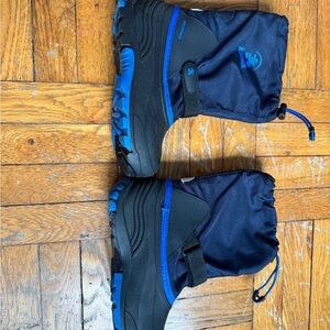 Durable Kamik Waterbug 5 snow boots. Black with blue accents. Ideal for winter conditions-40 F, removable liner and water proof.
