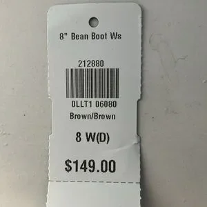 *Tag is not attached but included - plastic tag holder still on back of boot