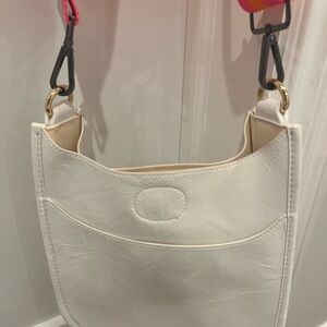Elevate your style with this chic white shoulder bag, featuring a vibrant pink strap for a pop of color. Perfect for any occasion.