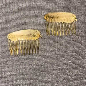 Vtg Cloisonné Floral/ Butterfly Hair Combs Gold Tone Metal Hair Accessory