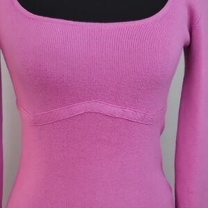 Chic fuchsia top with long sleeves. Perfect for layering or standalone wear. Adds vibrant style to any outfit.