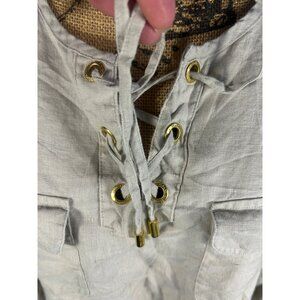 Ellen Tracy Womens Beige Linen Lace-Up Blouse Top With Pockets Size XL Lagenlook