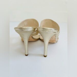 Christian Dior Gold/ Champagne logo embellished high heel mules EU 37.5