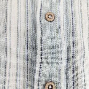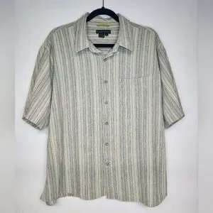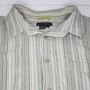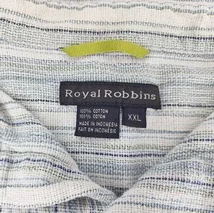 Royal Robbins Shirt Mens XXL Cream w/Blue & Green Stripes, Textured 100% Cotton Relaxed Fit SS