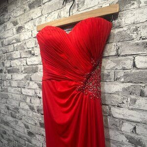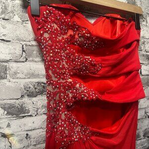 EUC Xscape Strapless Beaded Cut Out Back Prom Dress Size 0 (Red) STYLE# XS6876