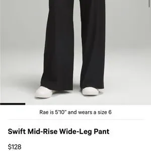 Lululemon Swift Mid-Rise wide leg pant.