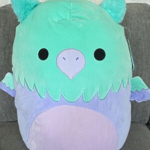 Adorable Squishmallow Minerva, a Medieval Griffin in teal and purple. Perfect for cuddling. 16 inches tall, NWT. Each Squishmallow has its own unique name and bio. Minerva wants to join your squad!