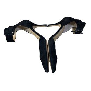 Audrey Brooke Hylda Black Size 6 Suede Pump Heel Ankle Buckle Strap