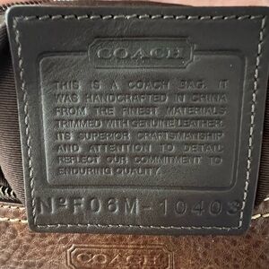 Elevate your style with the Coach Brown Signature Messenger Bag from 2000’s. This elegant bag features a classic design with a rich brown and tan coloring. It’s in great condition and very clean inside. The stitching and leather are nice and clean. Very slight marking on bottom corners of purse. Please see all pictures.