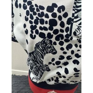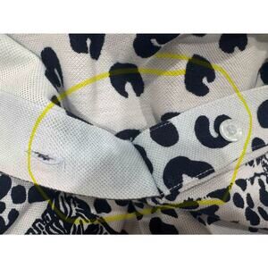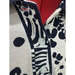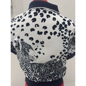 Keywords: Leonard Paris, vintage polo shirt, animal print, leopard print, zebra print, designer polo, short sleeve polo, retro shirt, black and white, womens polo, statement top, vintage clothing