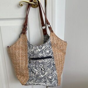 Elevate your style with this chic women's bag. Featuring a beautiful tan and black design, this bag is perfect for any occasion. Its elegant pattern adds a touch of sophistication to your outfit. Sakroots. In GUC.