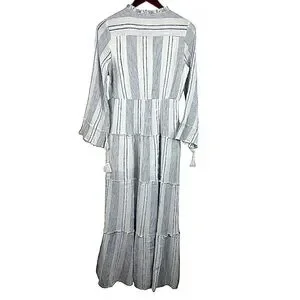 Stylish long sleeve dress by RAGA. Features gray stripes on a white base. Perfect for a sophisticated look.