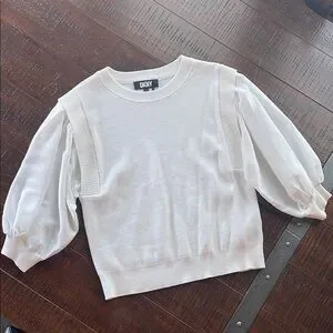 Elegant DKNY sweater with puff sleeves. Crisp white color.