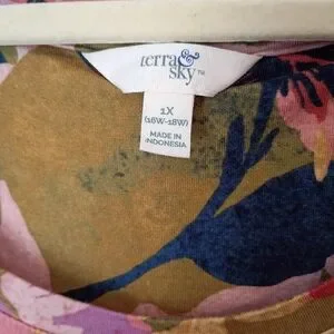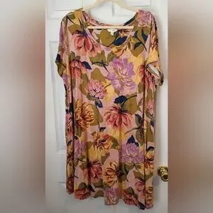 Stylish swing dress with a vibrant floral pattern. Features a mix of colors for a bold look.