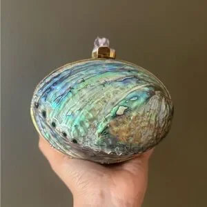 Iridescent Shell Clutch with Gold Accents