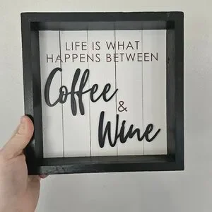 Hobby Lobby Wall Sign/Shelf Sitter Coffee And Wine Boxed Home Decor Sign