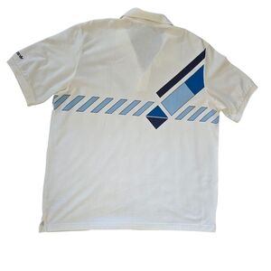 Adidas Men’s Polo Shirt White Blue Graphic Geometric Cotton Size XL