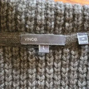 Chic chunky sweater coat by Vince is made from 50% wool and 50% yak. Features large cascading collar, side pockets, and cozy texture. Ideal for layering. Size large. (For reference, I'm 5'3" and 112 lbs. See fit in photo) Measures approximately 23+ inches across chest from pit to pit. Length is 31 inches from shoulder to hem.