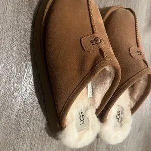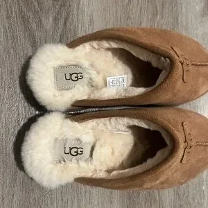 UGG Disquette Suede Sheepskin Slip-On Slipper Size 7 Tan Platform Slippers