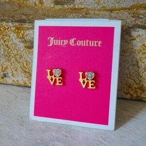 Juicy Couture LOVE Stud Earrings Gold Tone Y2K McBling Baddie Crystal CZ Hearts