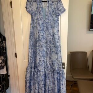Staud Calluna maxi dress, blue floral in GREAT condition! Worn 3 times and is dry cleaned, ready to go. Slip is included. Makes a great bridesmaid dress too!