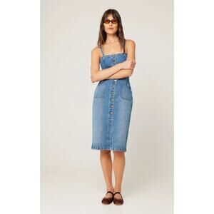 This Rollas Vintage Blue Venice Midi Dress is a timeless denim dream! It features a flattering fitted silhouette, a button-through front, and charming sailor patch pockets. Rolla's signature back pockets and vintage logo buttons add a touch of authenticity. Made with comfortable and durable 99% Australian Cotton & 1% Elastane. This dress is new without tags.