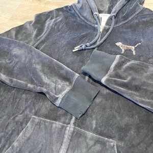 Victoria’s Secret Pink Hoodie Medium Black Gold Sequin Bling Vintage Full Zip