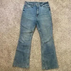 In excellent used condition. Women’s Old Navy higher high rise flare jeans with secret smooth pockets. Size 12. Medium wash. Has some stretch while holding its shape. Rise is approx 13 inches. 32 inch inseam. The perfect flare jeans! Can easily dress up or down.