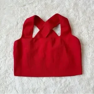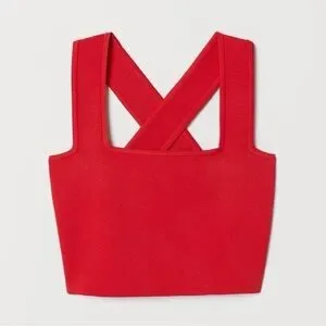 H&M Women Red Ribbed Cross Back Crop Top LARGE Preppy Bodycon Contemporary