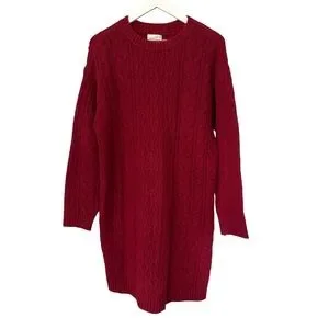 NWT Universal Thread Long Sleeve Cable Knit Mini Maroon Sweater Dress Size Small