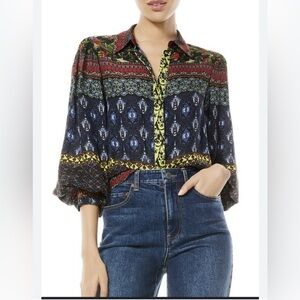 Elevate your style with this vibrant multicolor patterned top. Perfect for any occasion, this top features a blend of colors that add a pop to your wardrobe. Alice + Olivia WILLA BLOUSON SLEEVE TOP size XS