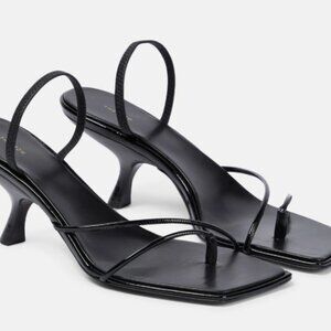 Leather sling black sandals from The Row. The Rai sandals are made of patent leather, featuring parallel tubular straps and squared toes. The heel measures 70mm. In great condition! Worn 2-3x.