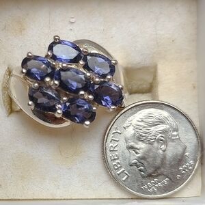 Brilliant purple Iolite oval stone ring. Total of 7 stones. Sterling silver. .925 stamped on inside of band. Purchased from HSN.