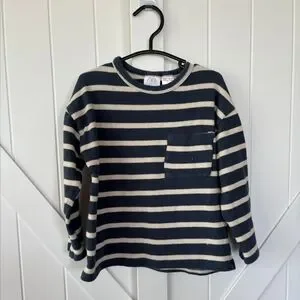 Zara Kids Navy and Cream Striped Long Sleeve Tee