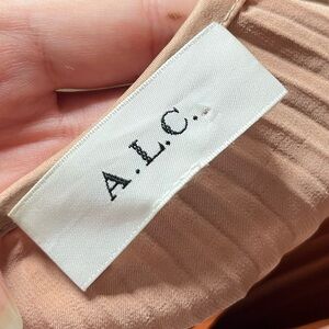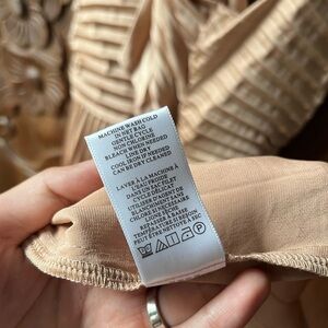 Lovely pinkish champagne color. Dress is in perfect condition—worn once for a wedding. I bought it on sale for about $500, size 10 but I was a solid 8 at the time and it fit me really nicely thanks to the back tie.