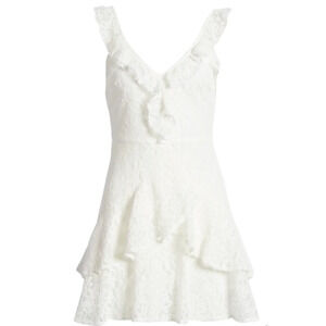 All In Favor Women's Ruffle Tiered V-Neck Sleeveless Lace Minidress in White Med