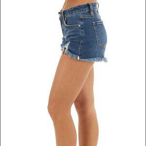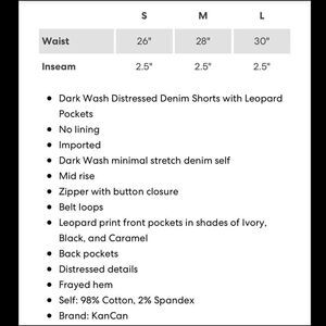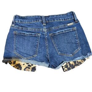 Kancan Leopard Pocket Frayed Distressed Denim Shorts Size Small