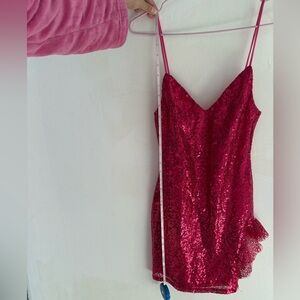 Vibrant fuchsia sequin dress. Ideal for parties.