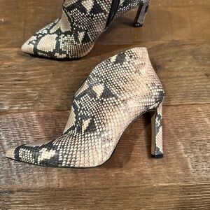 Vince Camuto Sestrinda Snake Print Pointed Toe Leather Heeled Ankle Booties Sz 7