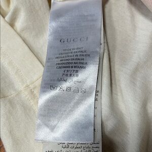 NWOT Stylish Gucci tee featuring a vibrant glittery strawberry design. Perfect for casual wear. The measurements are in the last two pics. I purchased this as a NWOT shirt; never worn. Very cute!!๐๐๐๐๐