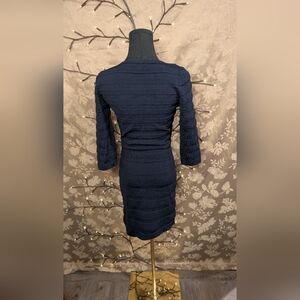 Simple but stunning, this sleek dress is stretchy and hugs your curves in all the best ways! This dress features a slimming bandage style, three quarter length sleeves and a scoop neckline! It's in excellent used condition with no stains, holes, or signs of wear! It's perfect for dinners, nights out, graduation, homecoming, and more! Get it for yourself or someone you love today!