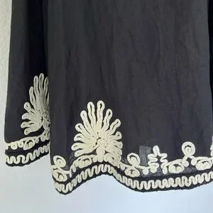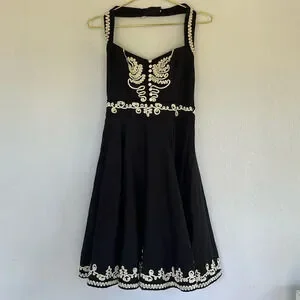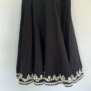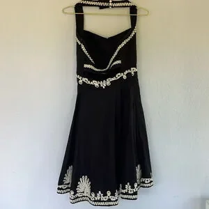French Connection Black & Ivory Linen Blend Embroidered Sweetheart Halter Dress 6