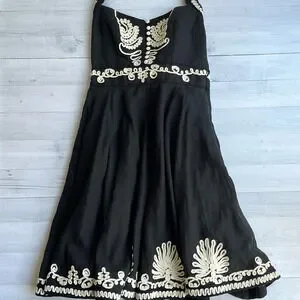 French Connection Black Ivory Linen Blend Embroidered Sweetheart Halter Dress 6